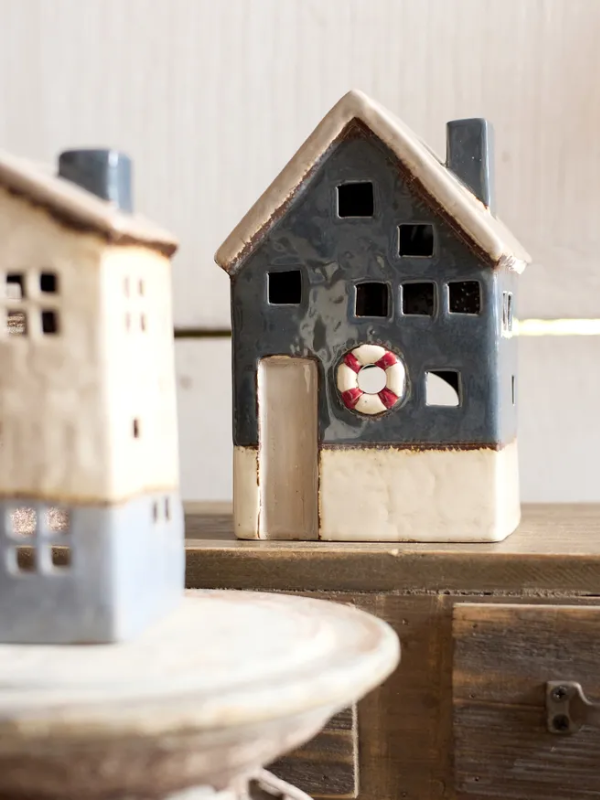 French Country Saint-Malo Tea Light Cream House with Buoy Large