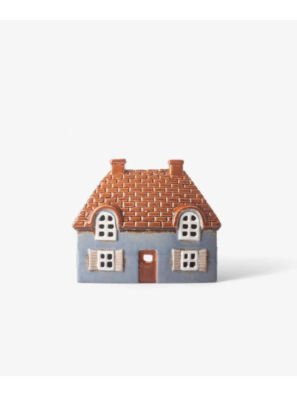 Evoke the pastoral beauty of the English Cotswolds with this handcrafted ceramic tea light in blue. Rendered with meticulous artisanal detail and a characterful tiled roof, it captures the essence of countryside architecture. Display as an individual focal point or integrate into a curated village tableau to introduce layered warmth, narrative depth, and refined aesthetic appeal to your interior spaces.