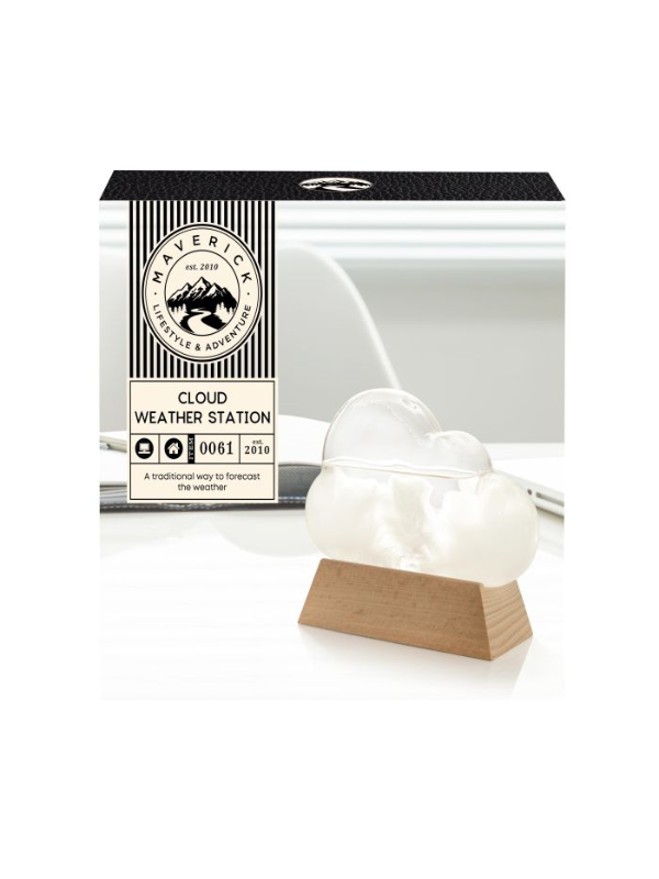 The Maverick Cloud Weather Station brings a timeless approach to weather forecasting with its elegant cloud-shaped storm glass paired with a finely crafted beechwood base. Beyond its charming design, this piece offers a sophisticated way to anticipate changing atmospheric conditions through subtle shifts in the storm glass crystals. Perfectly blending classic meteorological tradition with refined craftsmanship, it serves both as a functional instrument and an exquisite decorative accent for any room. Elevate your space with a weather station that combines scientific artistry with enduring style.