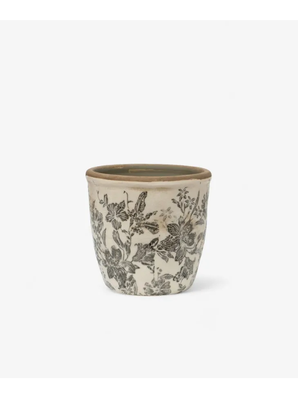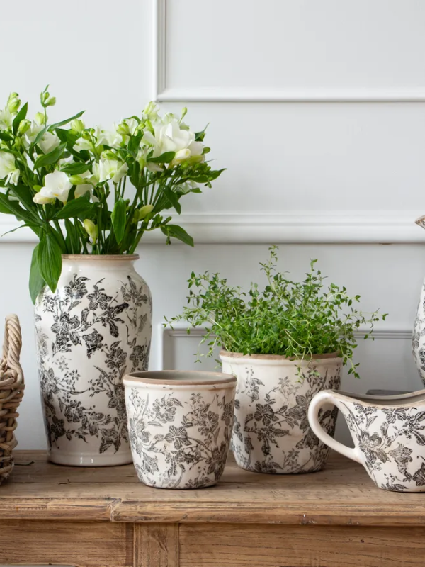 French Country Black Floral Pot Small
