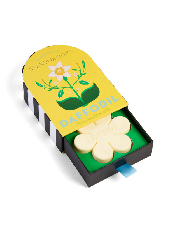 Experience the essence of spring with Kalastyle’s Skandi Blooms Daffodil Soap Bar. Enriched with sunflower lecithin, it gently nourishes your skin, leaving it soft and refreshed. Symbolizing hope, daffodils are among the first blooms of the season, their radiant yellow petals evoking joy and optimism as winter fades away. Immerse yourself in the delicate fragrance of sunny days and vibrant meadows adorned with golden daffodils. Presented in an elegant decorative box with ribbon, this charming flower-shaped soap is crafted in the USA.