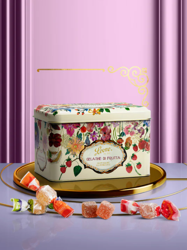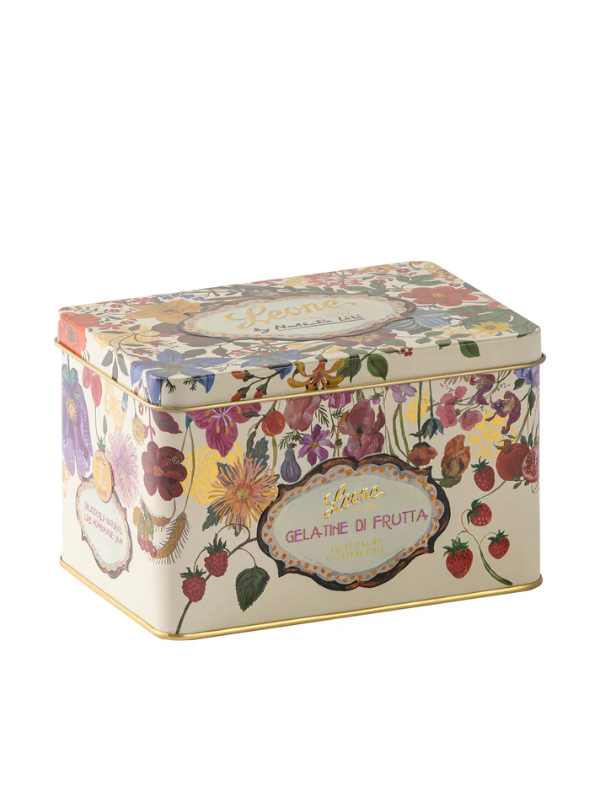 The vibrant and whimsical artistry of Nathalie Lété blends seamlessly with the refined sweetness of Leone in this elegant limited edition gift tin. Leone’s jellies are crafted with generous amounts of real fruit pulp, carefully selected natural fruit juices, and premium essential oils, ensuring an authentic and irresistible flavor. Committed to purity, Leone avoids freeze-dried or diluted juices and relies solely on natural ingredients to achieve their delicate colors, without any added artificial dyes.