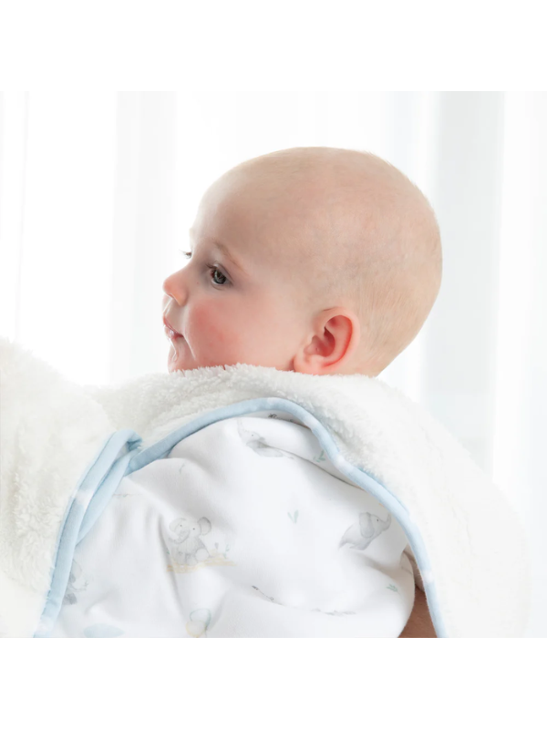 Wrap your little one in luxury with this exquisite pram blanket, where premium organic cotton jersey meets sumptuous sherpa backing. The breathable interlock construction ensures gentle comfort against delicate skin, while the plush reverse provides warmth for those precious moments on the move.