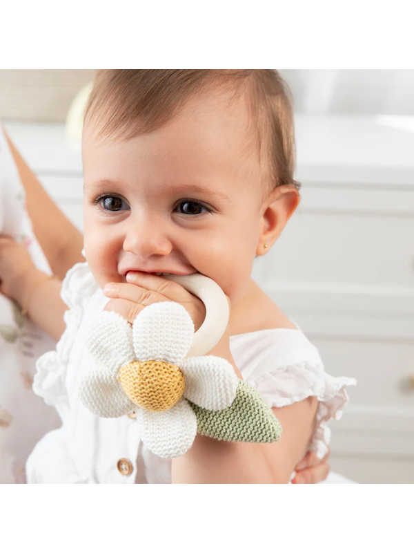Living Textiles Teething Ring Rattle Daisy