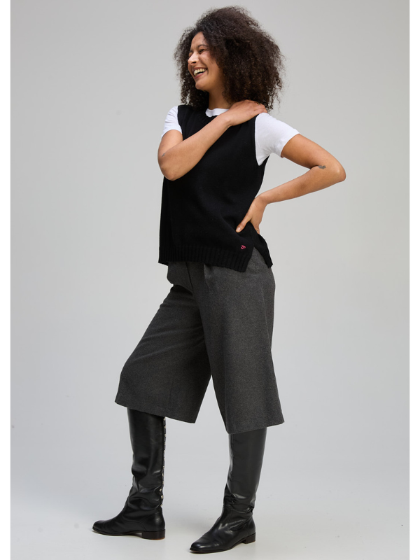 Elevate your wardrobe with this refined layering essential. The Zaket & Plover Essential Vest seamlessly transitions from season to season, whether worn as a standalone piece, layered beneath outerwear, or paired over your favourite long sleeve. Crafted in our signature relaxed fit with a gently split hemline, this knit hugs the body with understated elegance. A delicate hand-embroidered ZP logo adds a touch of understated sophistication to this timeless closet staple.