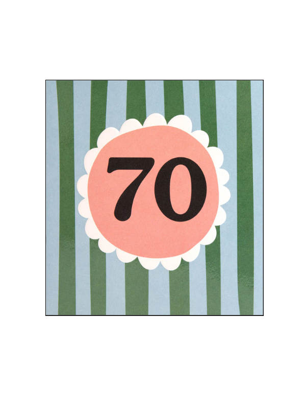 Wish someone a happy 70th with this gorgeous love heart birthday card. This beautiful card from Caroline Gardiner is made in the UK, printed on board using a low chlorine pulp from sustainable forests, and are 100% recyclable. Blank inside. Includes envelope, blank inside.