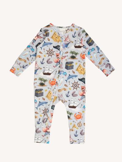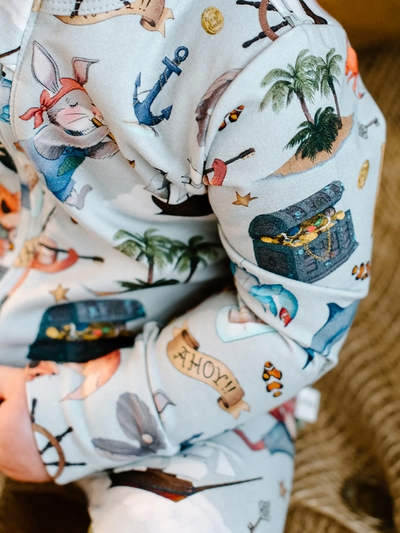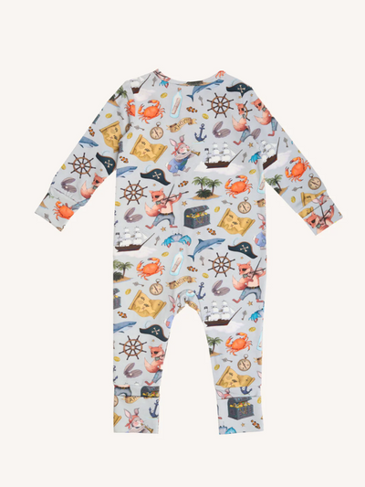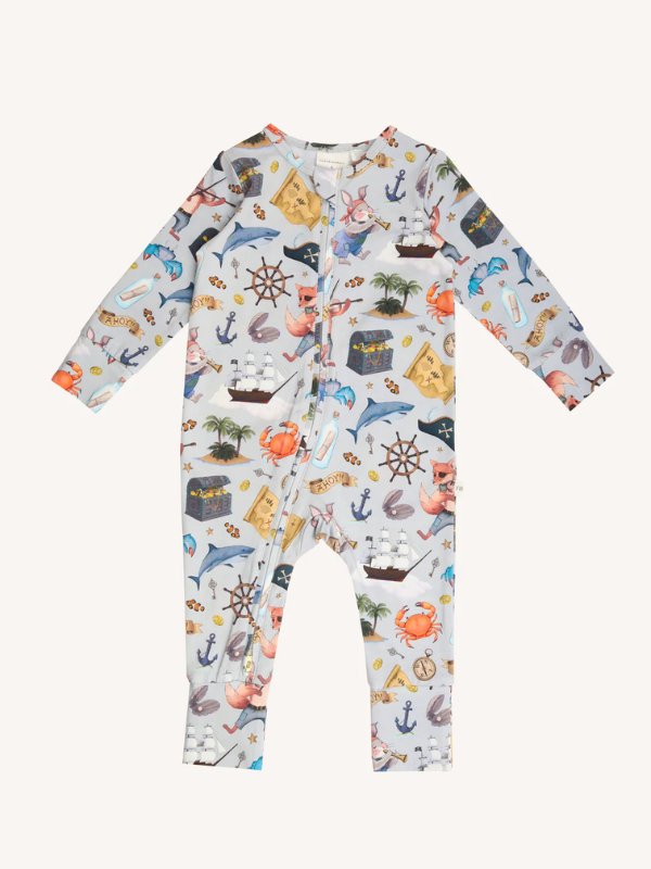 Transform your child's imagination into a magical and whimsical world with Fleur Harris Timeless Coverall. Made from soft stretch cotton jersey and adorned with Fleur's iconic 'Ships Ahoy!' art. Featuring a 2-way zipper for easy dressing and diaper changes, along with fold-over cuffs for all-day comfort during sleep and play.