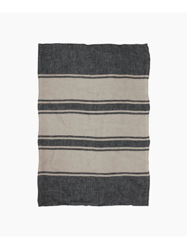 French Country Twill Tea Towel Charcoal & Natural Stripes