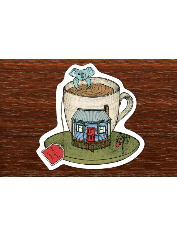 Featuring a whimsical Australian koala magnet adorned with a unique Aussie teacup design. Expertly crafted and printed in Australia. Illustrated by the talented artist Emily May.
