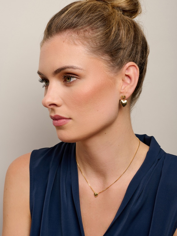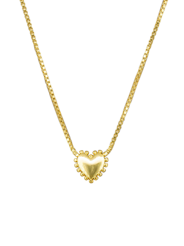 Experience the luxurious charm of the Tiger Tree Ball Edged Heart Necklace, meticulously fashioned from elegant gold plated recycled brass.