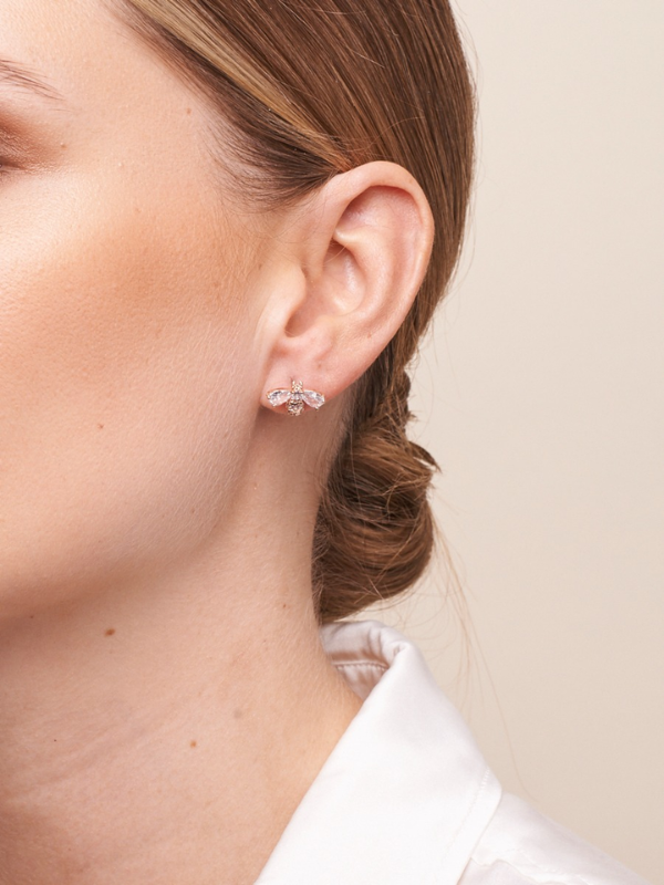 Tiger Tree Crystal Bee Studs Rose Gold