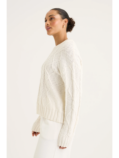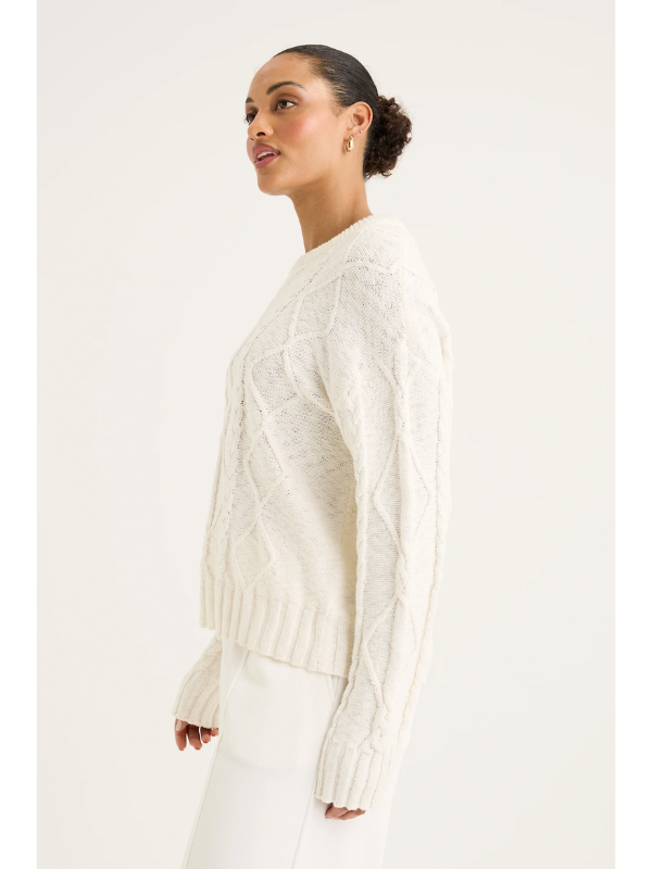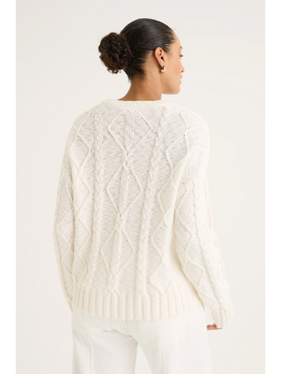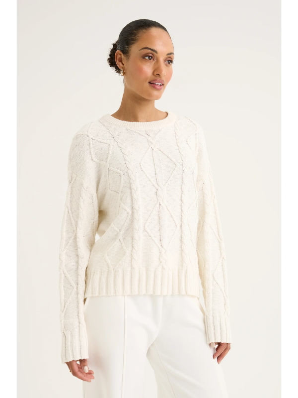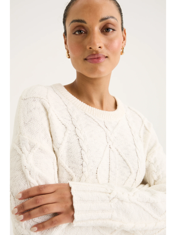 Elevate your winter wardrobe with our Yarra Trail Trailer Cable Knit in stylish Ecru. Featuring a round neckline and designer cable knit pattern, this premium piece boasts long sleeves, hip length and a regular fit for timeless elegance.
